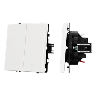 Механизм выключателя управления шторами на 1 пост 2 перекидные клавиши. Цвет - белый, с Soft-Touch покрытием. Без фронтальной рамки. Уровень пылевлагозащиты IP20. Выключатель устанавливается в стандартный круглый подрозетник круглого сечения диаметром 60мм.
