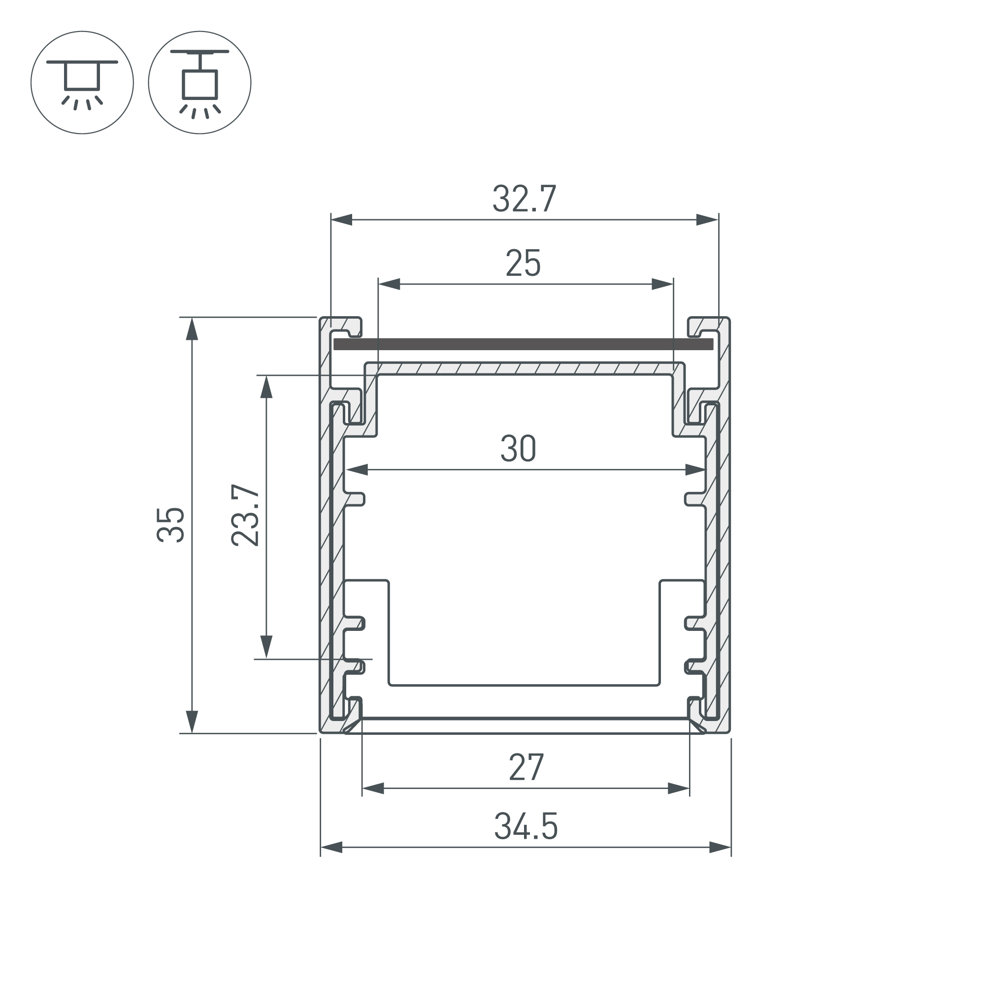 Трехкомпонентный алюминиевый анодированный гибкий профиль для светодиодных лент: внутренний профиль и две внешние стенки. Габаритные размеры (L×W×H): 2000x34,5x35 мм. Ширина площадки для ленты 25 мм. Укомплектован черной эластичной лентой для защиты ленты от пыли и фильтрации светового потока. Экраны, заглушки и другие аксессуары приобретаются отдельно. Цена за 1 метр.