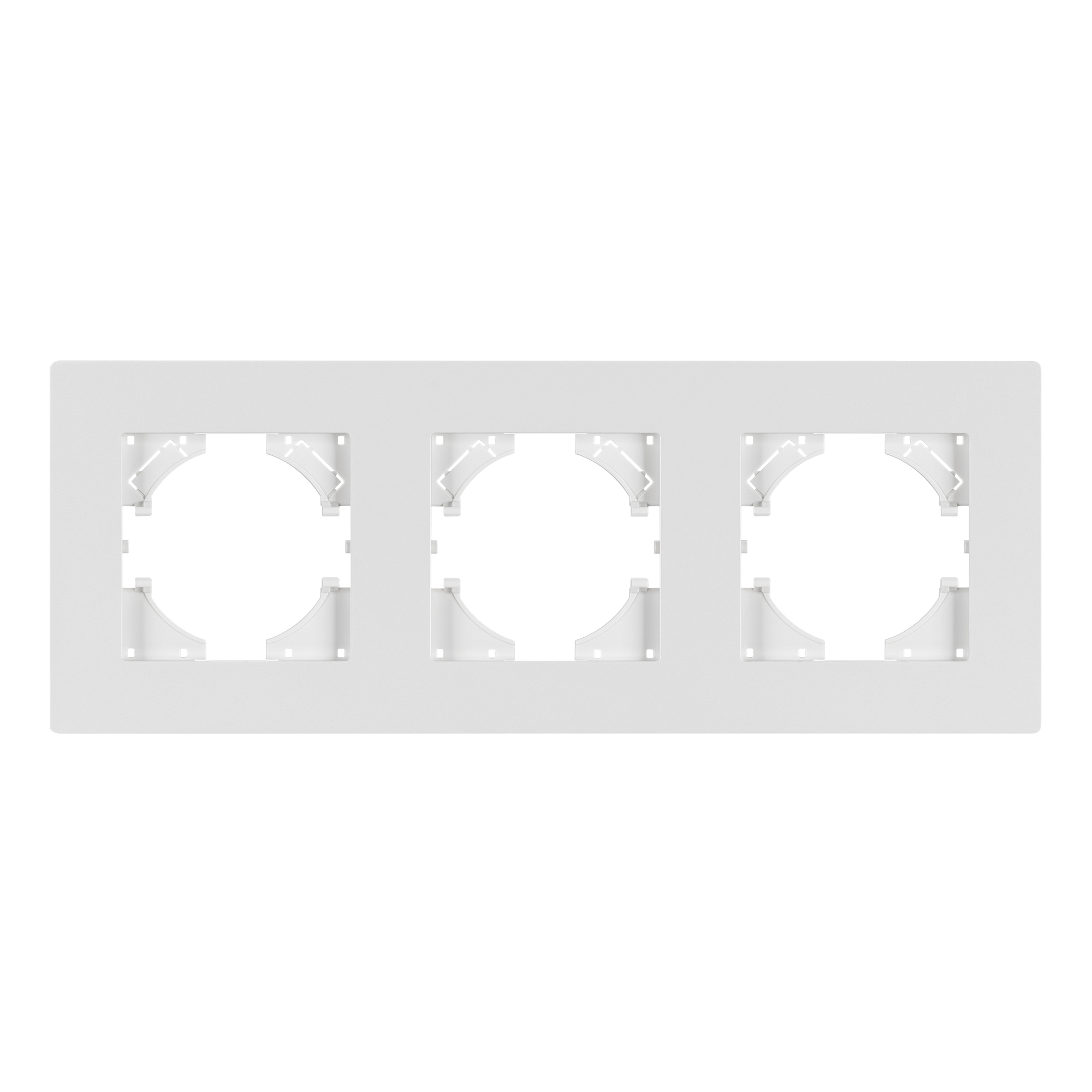 Рамка пластиковая на 3 поста, под встраиваемый механизм. Цвет - белый. Среднего уровня герметичности IP20. Ориентация монтажа - горизонтальная (основным ориентиром служат посадочные выступы для накладки механизма).