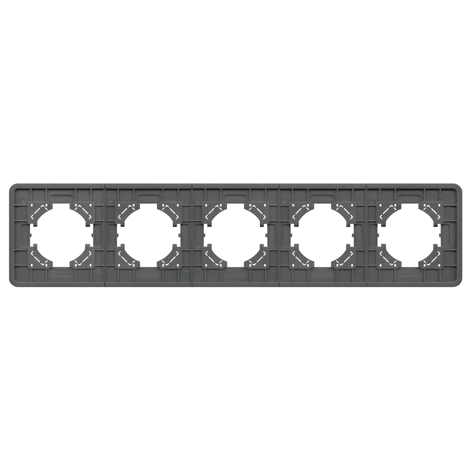 Рамка стеклянная на 5 постов, под встраиваемый механизм. Цвет - серый с Soft-Touch покрытием. Среднего уровня герметичности IP20. Ориентация монтажа - горизонтальная (основным ориентиром служат посадочные выступы для накладки механизма).