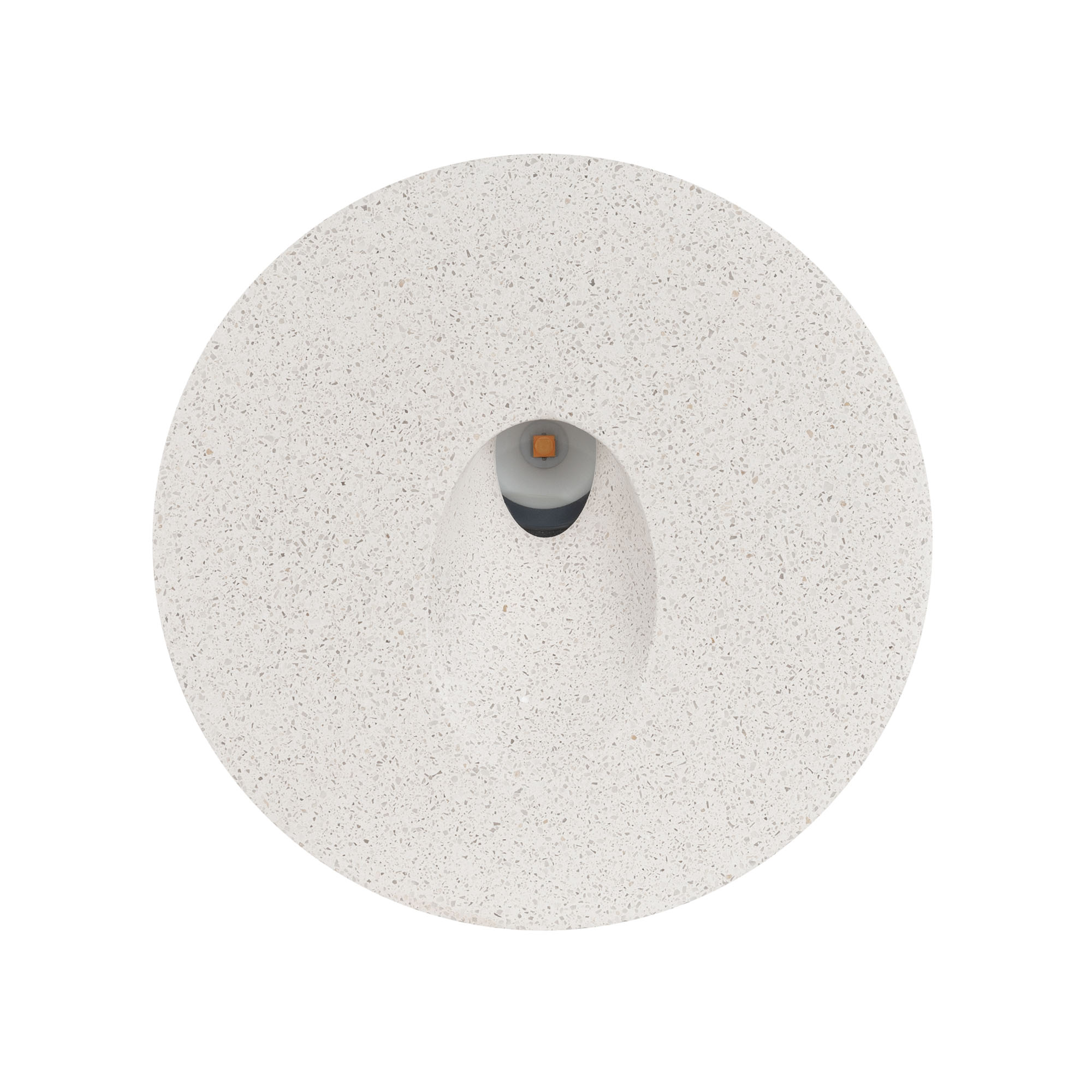 Светодиодный встраиваемый круглый светильник для стен, лестниц. Мощность 3Вт, световой поток 150 лм, теплый 3000К, угол 45x70°, CRI>80, напряжение 230 В. Круглый корпус из бетона белого цвета и алюминия. Степень защиты IP65. Питание AC230V, мощность 3Вт. Размеры DxH 120x76мм. Драйвер встроенный, пульсация <0.5%.
